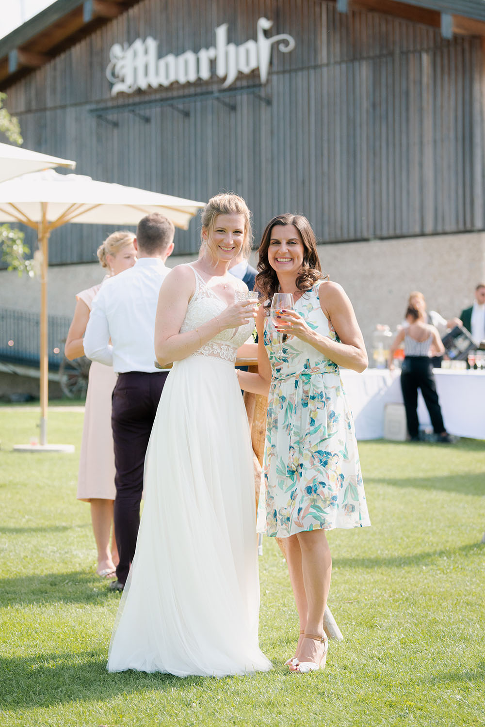 Die Brautpaarportraits waren einfach atemberaubend, denn die Lage des Moarhofs mit dem herrlichen Blick auf die Alpen bot die perfekte Kulisse für die Bilder. Auch die Gäste haben mich mit ihrer Freundlichkeit und Offenheit beeindruckt, und ich hatte die Möglichkeit, wunderschöne Bilder von ihnen zu machen. Die Hochzeit war eine tolle Feier mit vielen Highlights wie dem Sektempfang, dem Tanz des Brautpaares und den schönen Momenten mit der Familie und den Freunden.