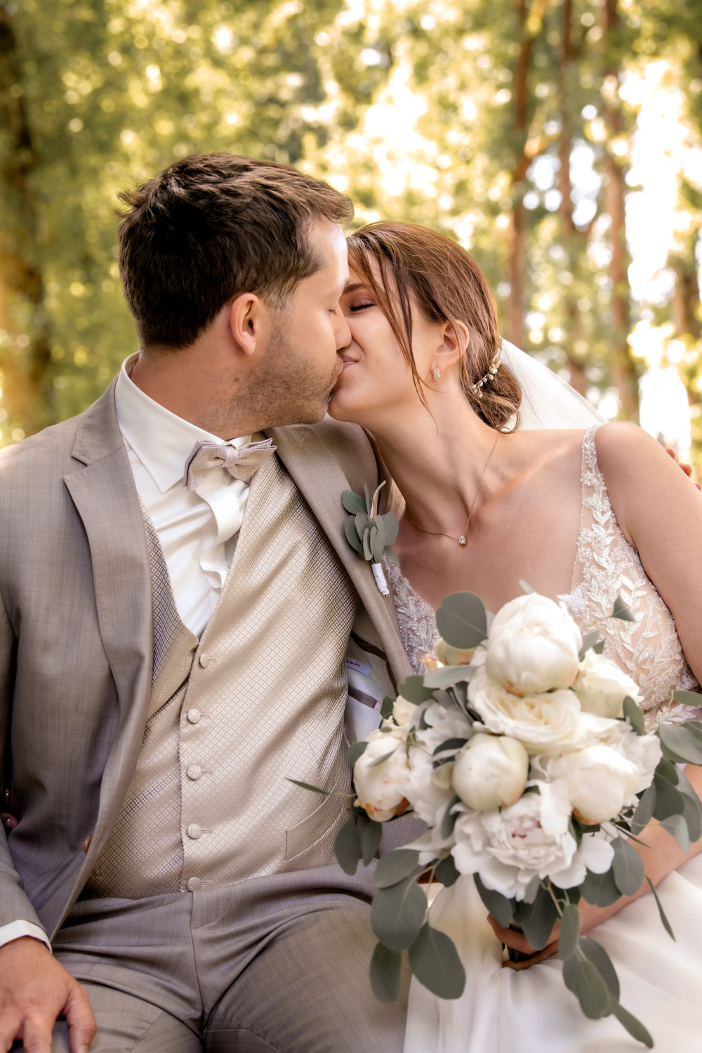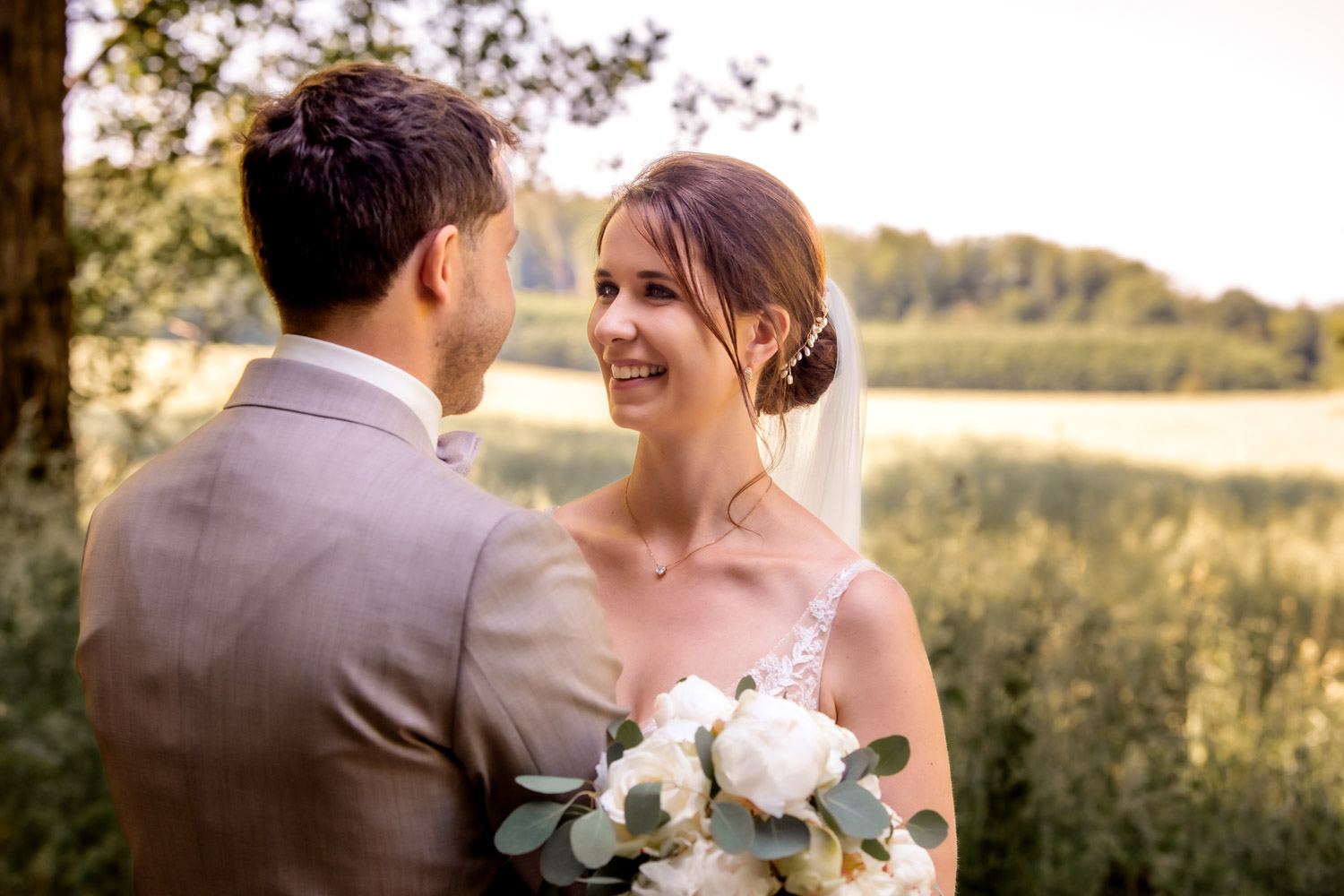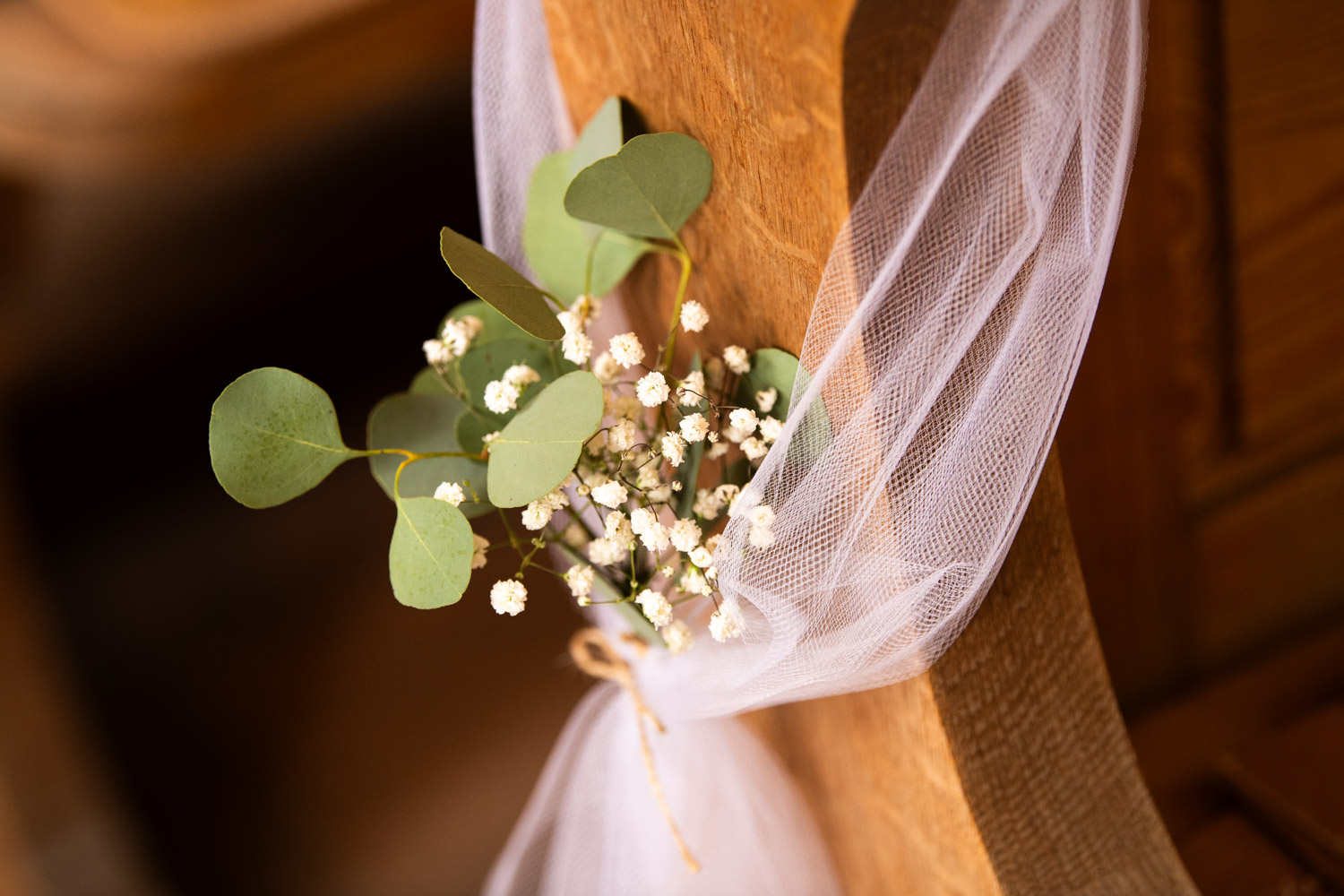 Da sich das Brautpaar bei seiner Anfrage an mich für das große „Rundum sorglos“-Paket entschieden hatte, begann mein Tag schon früh am Morgen für den First Look, bevor es dann für die kirchliche Trauung zur kleinen, romantischen Kirche St. Jakob in Weßling ging. Dort hielt ich vom Einzug der Braut über das Ja-Wort und den Ringtausch bis hin zur Gratulation alles fest. Danach machte ich mich noch dem Brautpaar und den Gästen auf den Weg zur Location, um – wie es sich das Brautpaar gewünscht hatte – die Dekoration zu fotografieren. Vor Ort nutzten wir dann die tolle Lage mitten auf dem Land dafür, in nur wenigen Minuten mitten in der Natur zu sein – und dort traumhafte Brautpaarportraits zu machen. Nachdem ich dann am Abend noch die tolle Stimmung auf der Feier eingefangen hatte, ging es für mich wieder nach Hause, damit das Brautpaar schon wenige Tage später seine professionell bearbeiteten Fotos und das hochwertige Fotobuch in den Händen halten konnte.