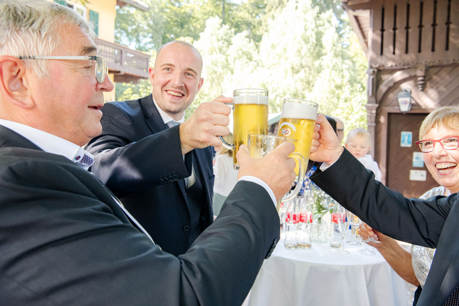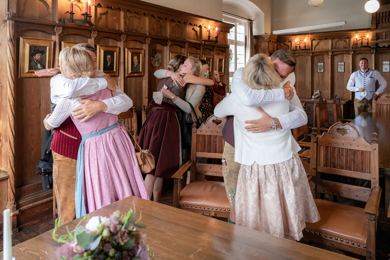 ✔ Nach der Trauung: Ich halte die ersten Glückwünsche fest und mache Hochzeitsfotos des Brautpaares sowie schöne Gruppenbilder mit euren Gästen.